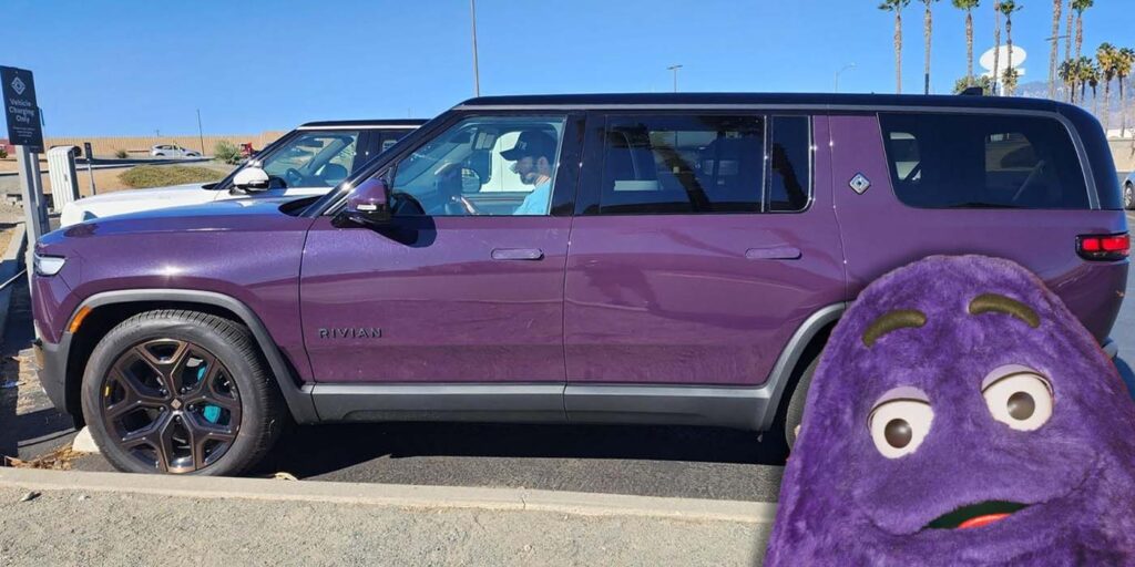 A Rivian owner and EV enthusiast recently shared images of a purple R1S Quad out in public with manufacturer plates. Could it be a new exterior color Rivian will offer customers, or is this just a rare shade applied to a one-off test vehicle? Regardless of its future, a purple Rivian is already garnering plenty of comments from the online community.